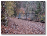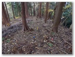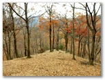 地形図によれば、698m地点あたりから徐々に尾根が北東方向に向きを変えます。その地形は、歩きながらもよく見通せました。そして標高が下がるほどに、紅葉・黄葉が美しく、かつ豊かになりました。もし日が差していたら、どれほど素晴らしいことでしょうか。右手に見える東海自然歩道の尾根は、岩石のゴロゴロ転がった、荒廃の道。こちらは足元フカフカ、まるで王子王女様の道です。これはちょっと、秘密にしておきたいとも思うほど。...神奈川の水源林万歳です。