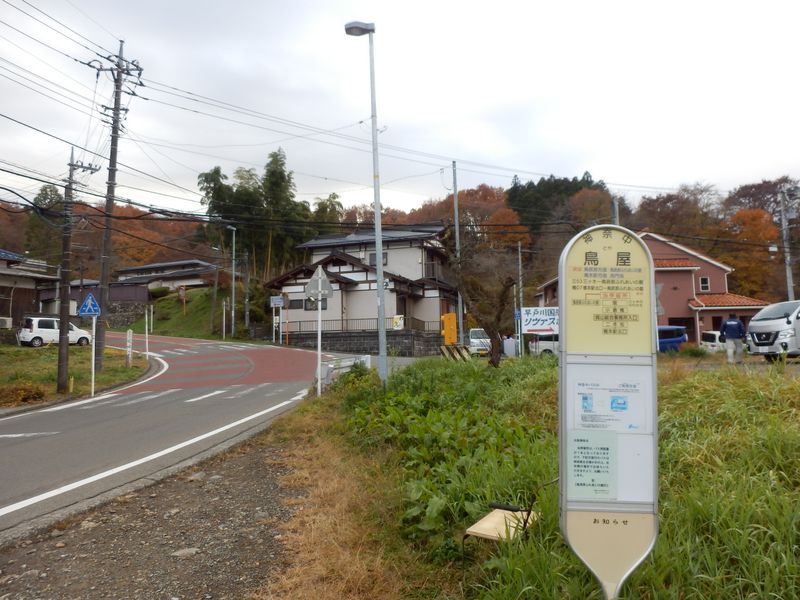 -- 鳥屋で下車。曇天で色は冴えない。7:39