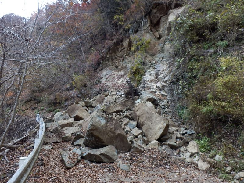 -- 林道の法面が崩落。8:57