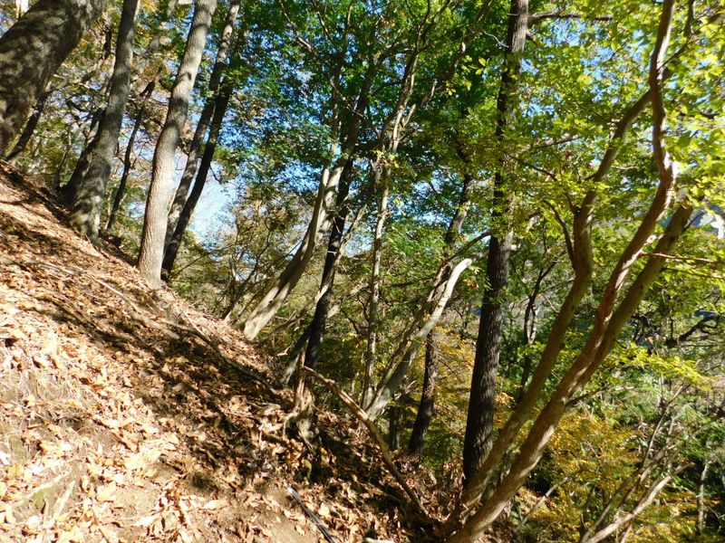 -- 踏み跡不明瞭、急勾配、落ち葉が滑る。10:00