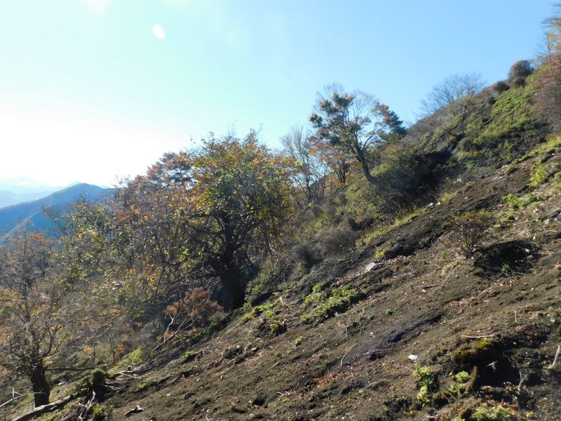 -- 左手の砂ザレ場。勾配は30度強か。11:45