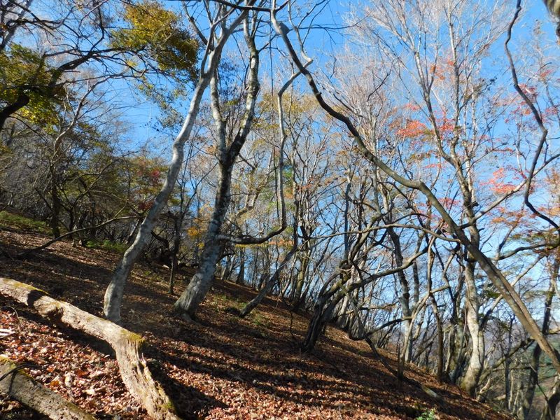 -- 杉林が終わると、素敵な広葉樹林の尾根。12:09