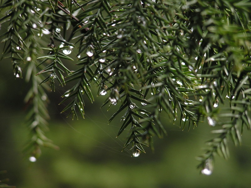 杉と朝露