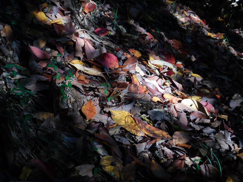 -- 斜面を覆う枯れ葉。