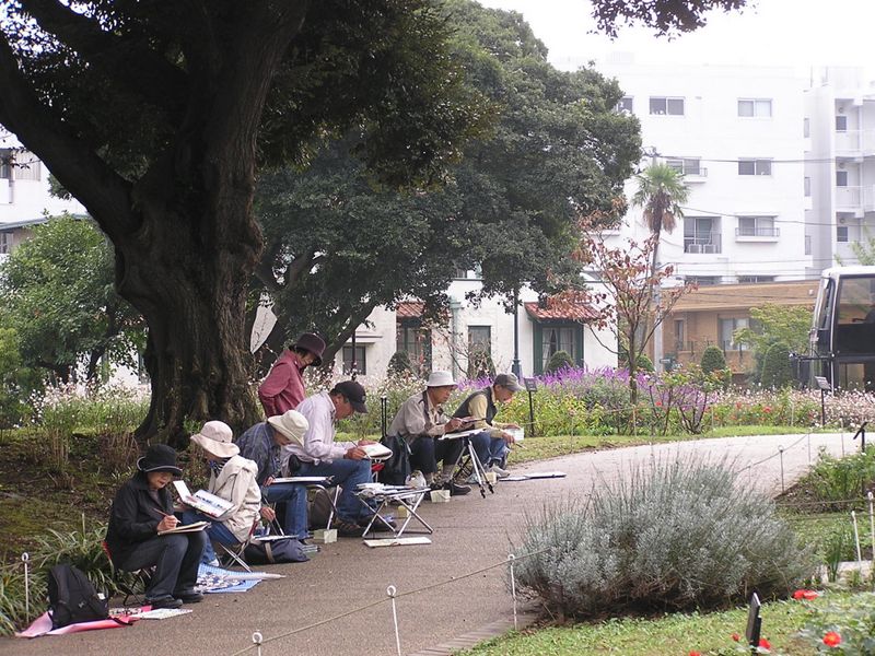 -- 写生する人々。