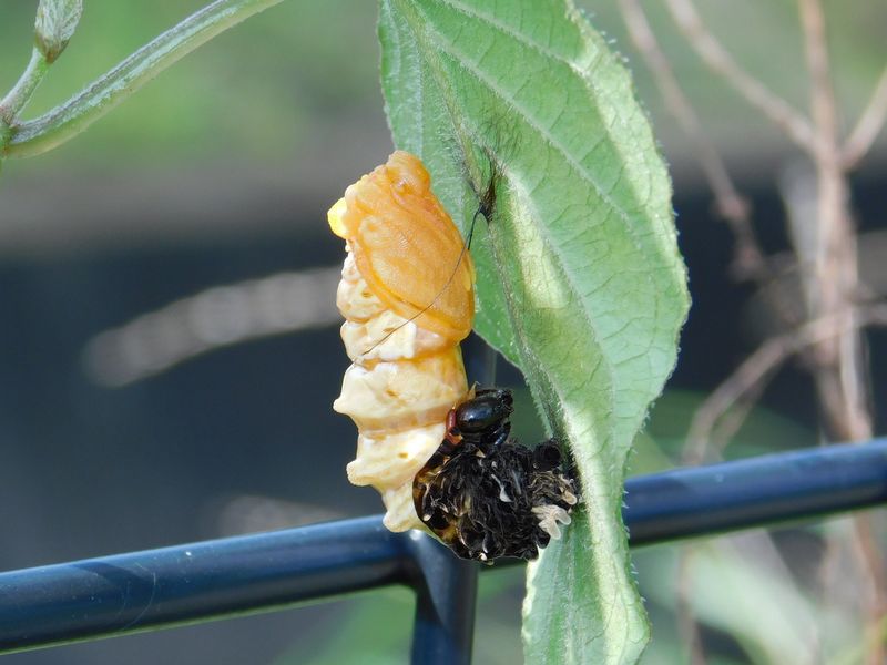 -- 別個体:体をくねらせて、幼虫時代の殻を脱ぐ。