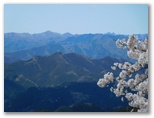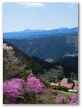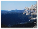 顔振峠に至ると、摩利支天に直行しました。摩利支天の前は、大好きな展望台です。眼下には美しい桜や桃の咲く山里。深い谷の彼方には、奥多摩と奥武蔵の山なみの、本当に波のような稜線。はるか右手と左手に、二基の金字塔のように、武甲山と富士山。義経でも誰でも、顔を振り向けるでしょう。中でも郷愁を誘うのは、右手の山腹にある風影(ふかげ)の里。秋はヒガンバナの美しい小道を歩ける、お気に入りの山上集落。そこには、珍しく郵便ポストもあります。