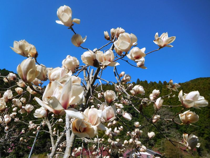 -- ぽっかり青空へ、マグノリアの園芸種。8:34
