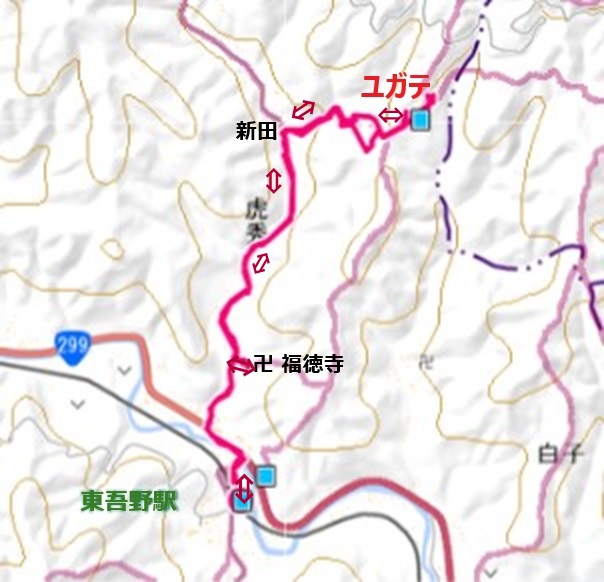 東吾野駅 ◆寺坂棚田から横瀬駅に戻り、飯能行き各停に乗った。暑さで少々疲れたので、そのまま帰宅してもいいかな、と思ったが、東吾野駅で降りてしまった。◆東吾野駅から国道299号に出てすぐ、何かにつまづいて、前のめりに転倒した。両腕で受け身の姿勢を取ったのだが、カメラをかばった左下腕に大きな擦り傷を負った。半そでシャツだったことに加え、アスファルト歩道の表面が、かなり荒っぽかった。◆出血があるので、とりあえずティッシュとハンカチで傷を覆い、福徳寺に行く。寺にはきれいなトイレと水道水がある。この寺で改めて応急手当てをした。◆ユガテは期待通り、紅白のヒガンバナが初秋の絵を彩っていた。赤い金魚の群れや、赤い屋根のトイレも、どことなくメルヘンチック。30分ほどくつろぎ、満たされて家路に就いた。 ◎ 東吾野駅 11:12 ---(国道299号歩道で転倒)--- 11:29 福徳寺(応急手当)11:48 --- 12:06 新田 12:06 --- 12:27 ユガテ 12:57 --- 13:15 新田 13:15 --- 13:44 福徳寺入口 13:44 --- 13:57 東吾野駅 全2時間45分 単独 ❀❀❀ ❢