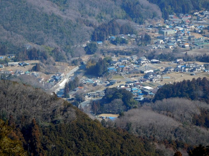 -- 山頂より、桃木の登山口方面。都幾川も。10:15