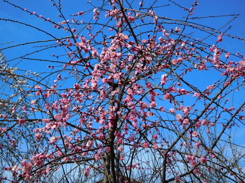 -- ピンクの枝垂れ梅。12:41