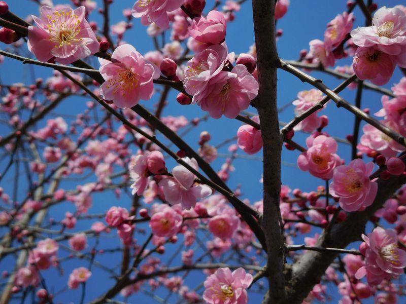 -- つぼみもたくさんある枝垂れ梅。12:42