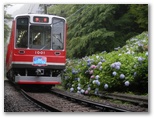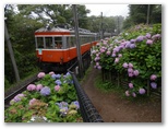 6月29日、湯坂路を歩いて来ました。1週間前に腰を痛め、以後数日間ほとんど動けなかったので、そのリハビリとして、楽に歩けて紫陽花の花も楽しめる湯坂路を選んだものです。この機会に、いつの日か見たいと思っていた、紫陽花の花をかすめながら走る登山電車の撮影スポットにも行きました。沿道の「あじさいの小径」はすてきでしたが、楽しみにしていた浅間山の「アジサイロード」は…