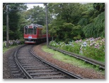 大平台から再び登山電車に乗って、小涌谷に向かいます。大平台付近の紫陽花は背が低くなっていましたが、宮ノ下の手前あたりでは、電車の窓ガラスをバサバサと擦るほど、紫陽花が旺盛に繁っていました。