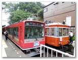 電車は両方向から来るので、5分から10分ごとに撮影のチャンスがあります。走行速度も緩やかなので、どんなカメラでもよく写ります。私は懐かしい{モハ104号♥106号}が強羅に向かって登って行くまで撮影して、大平台駅に戻りました。スイッチバック駅なので、終着駅のように車止めがあり、電車の発着を真正面から眺めることができます。すると、運よく{モハ103号♥107号}が到着しました。まだまだ元気そうです。どうか体を大切にして、末長く活躍してください。(♥は3両編成の中間車)