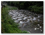 ところで、滝の写真によく見られるのが、露出時間を長めにして流水をボカす手法です。夢のように美しい滝の絵ができるので、高感度のフィルムやCCDの時代になっても、常套手段のように多用されます。しかし、こうした夢のように美しい滝は、写真の中にしか存在しません。他方、実物の滝は、五感を通して、その存在感を伝えてきます。私には説明板にある「幽玄」への感性が足りませんが、この日この滝に潜む、暗い水と朽木の匂いは感じられました。