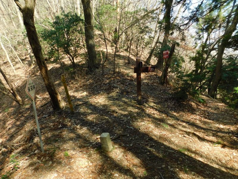 -- 変形四差路に戻った。舟子尾根へは直進。12:04
