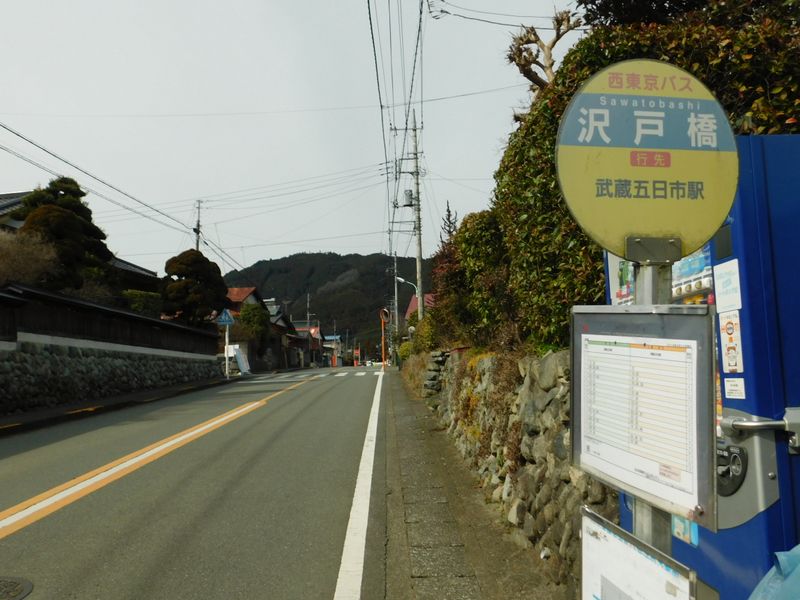 -- 沢戸橋バス停にゴールイン。次のバスは14分後。13:57