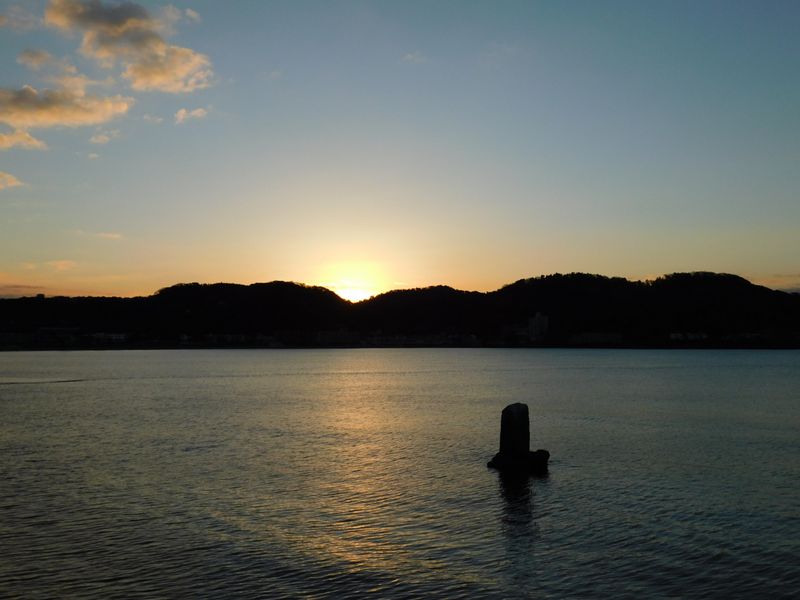 -- 日の出の瞬間。右手前は不如帰碑。7:06